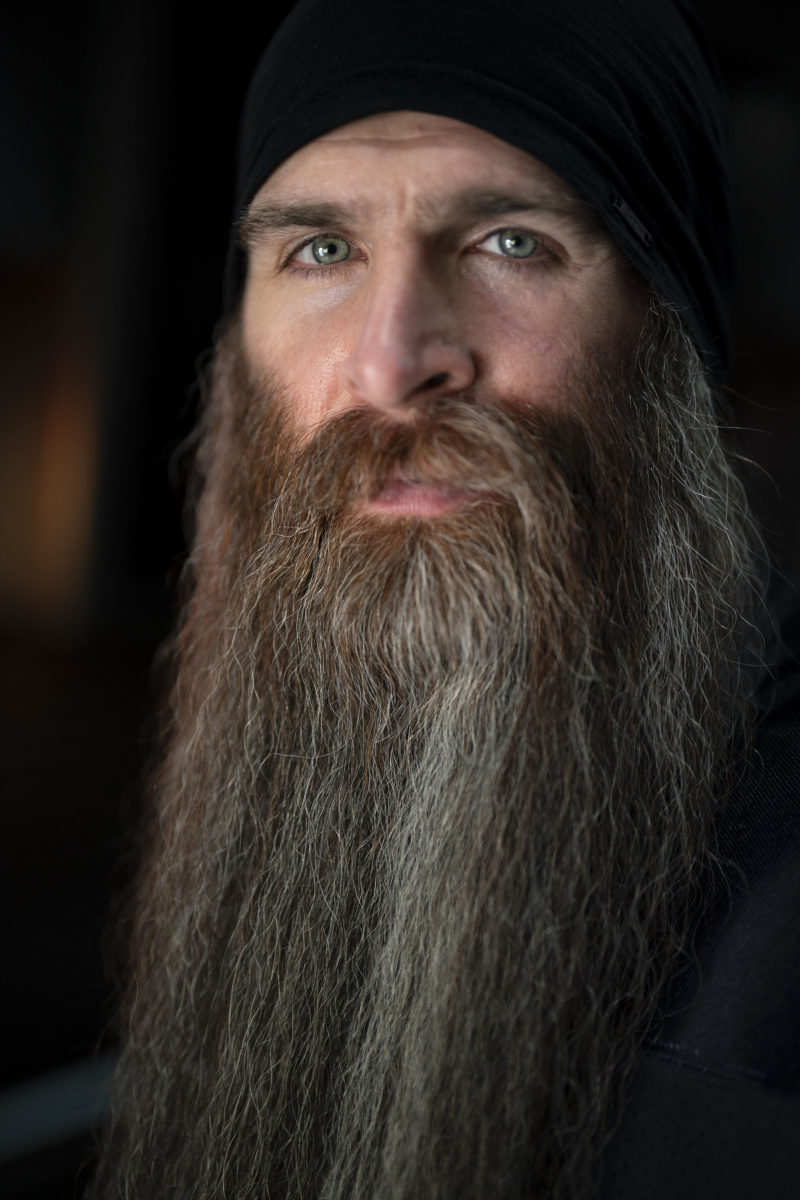 First place is lit nicely and we like the composition of the leading line on the wall guiding the eyes to the playful pose of the subject. Second place has great lighting and great pose of the dual subjects. We like the unique composition of third place and think it works nicely with the beard filling the frame.