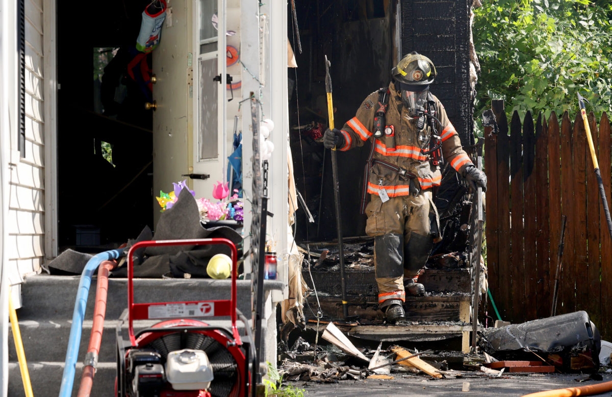 Only two entries. First place featured an image of emotion and vulnerability. And the choice to stay wide and include the detached looking officers provides an interesting contrast. Second place is a good find for a spot story after the fire has been fought.