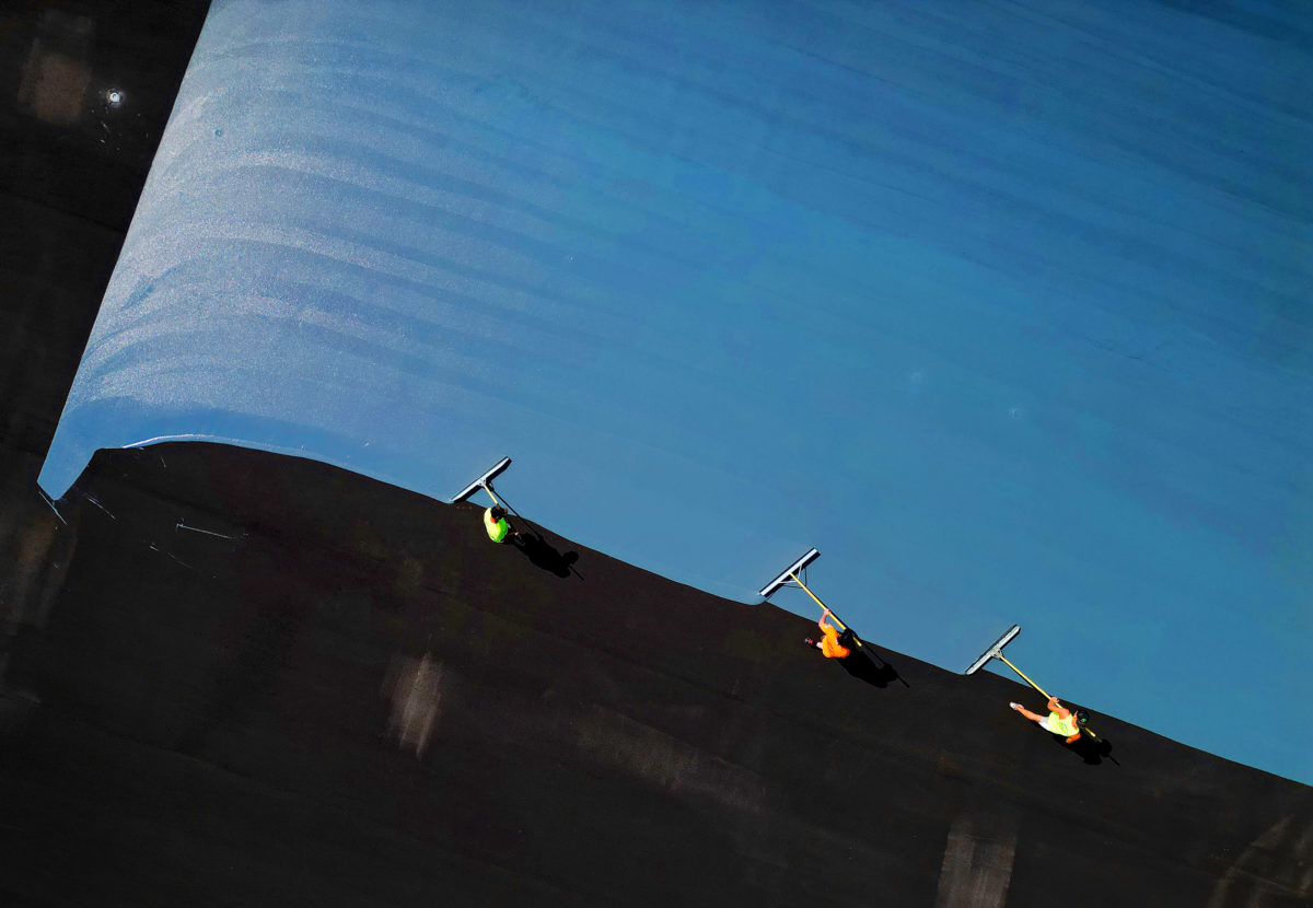1st. This frame has a lot going for it. Psychotic sheep. Peak action hand plant. Grimace. Tangled body. Yep. That's mutton bustin' at its finest. 2nd. We liked the moment a lot. The mimicking of the fisherfolks and the trees was a cool bonus. 3rd. Graphic image with cool spot color. Had to read the caption to see what we were seeing since we couldn't agree.