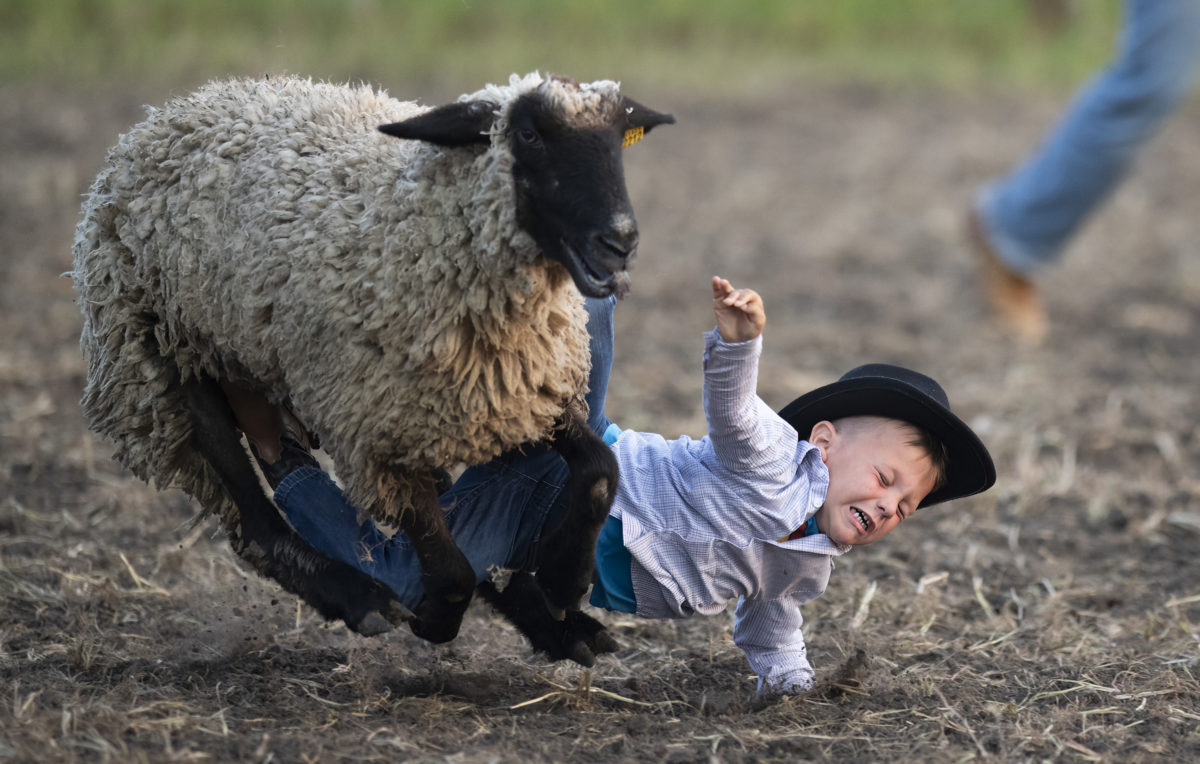1st. This frame has a lot going for it. Psychotic sheep. Peak action hand plant. Grimace. Tangled body. Yep. That's mutton bustin' at its finest.