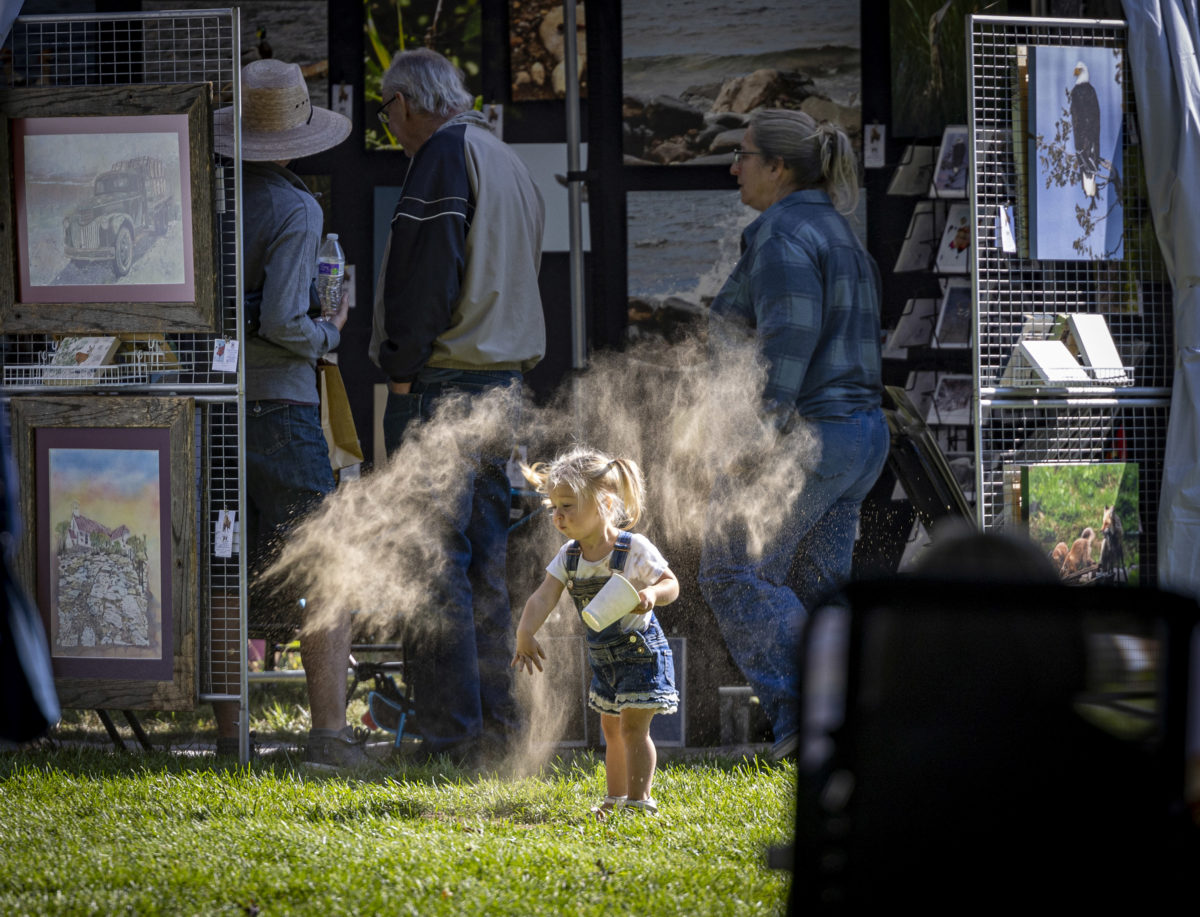 We were drawn to the first-place winner for its immediate connection to the moment between a mother and her children. We also appreciated the composition and lighting, which enhanced it. The marching band image placed second for its beautiful lighting and clean composition. The third-place image is a fun, unique find from arts festival coverage.