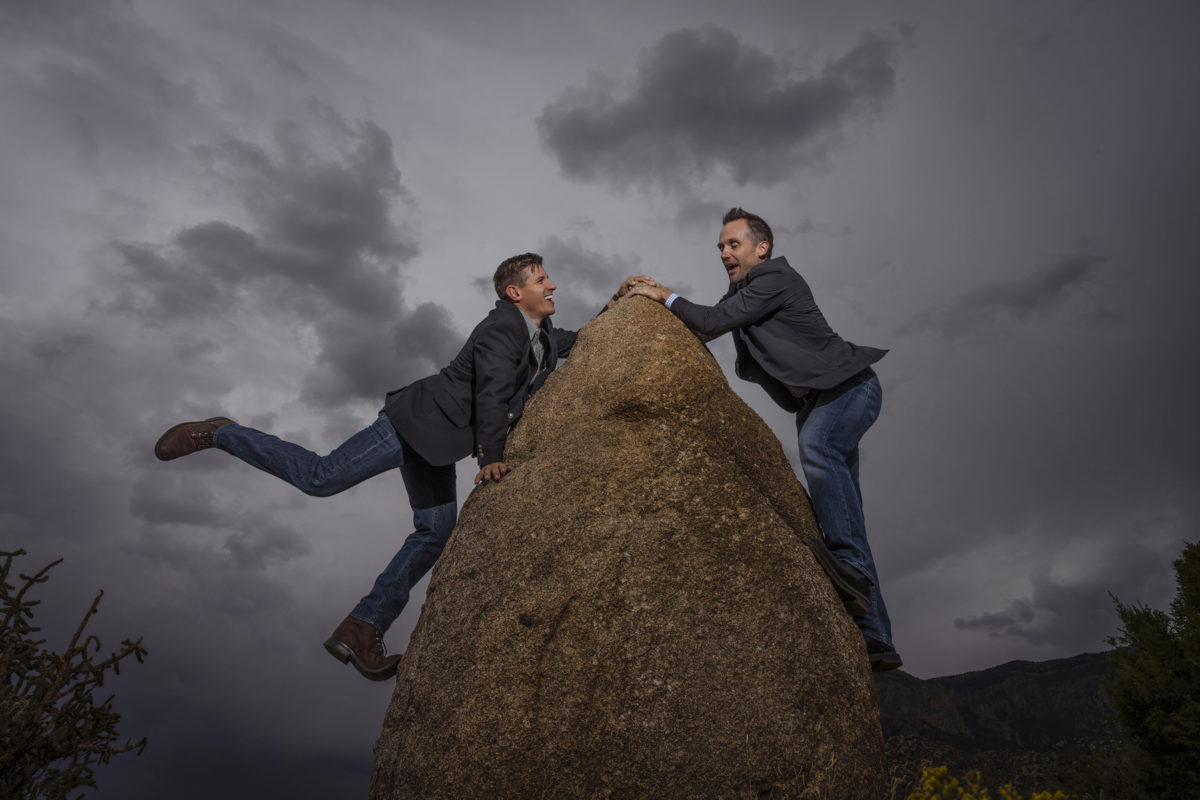The image of the poultry farmer and her rooster was an instant hit with the judges. Everything about it is perfect, memorable and funny. Rock climbers was clever and well executed; fringe hat is fascinating and well done.