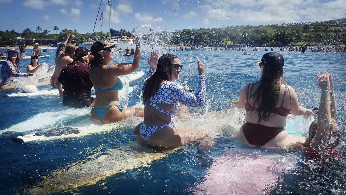 First place, good efforts for the photographer to paddle out to cover the story with great variety. Second, good clean and good action. Loved the symmetry of the photo, could have used a tighter crop.