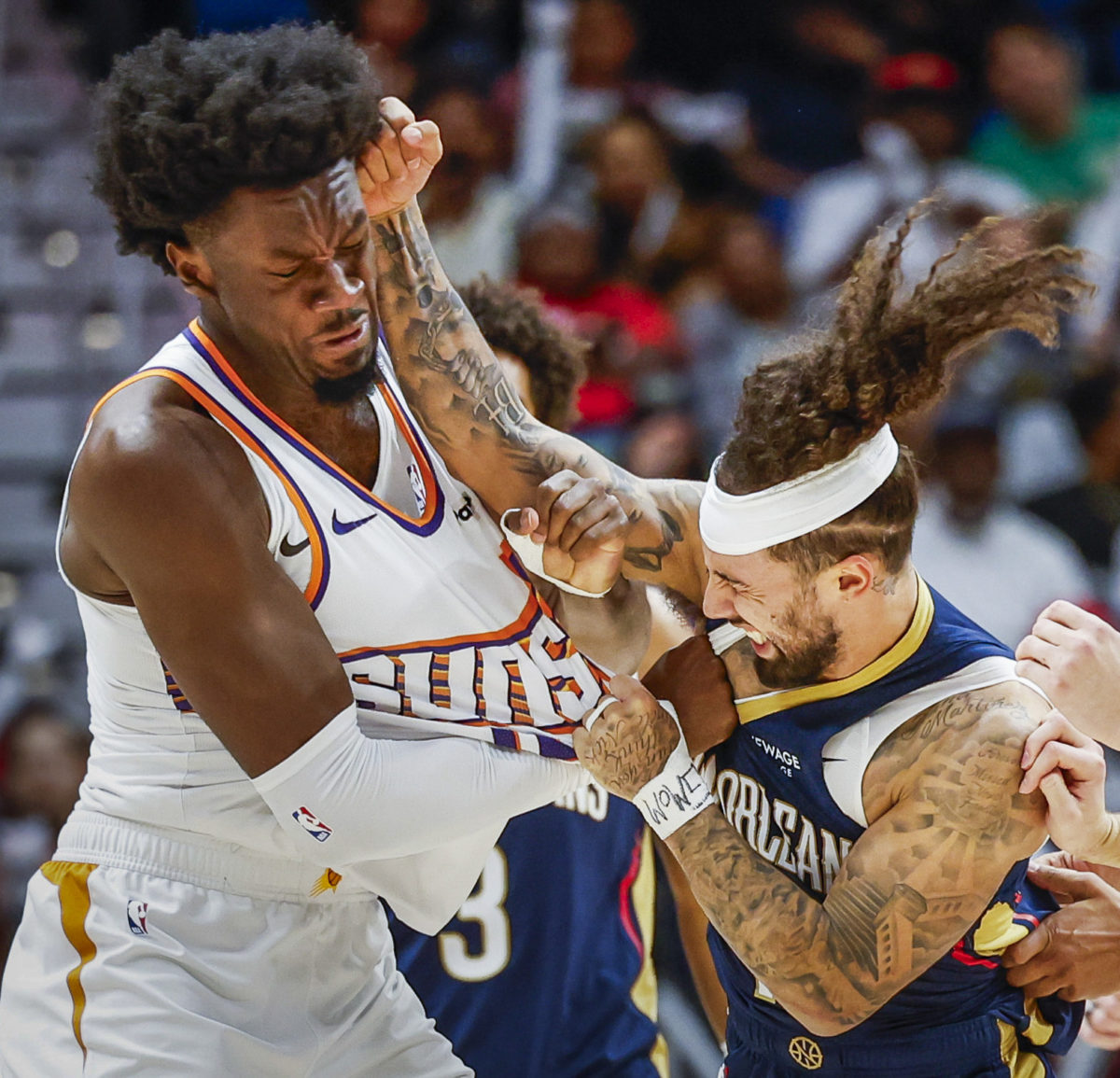 This was another category of strong images, where first place stood out and the remaining three could have appeared in any order. First place: We all agreed this image stood out for its intensity, composition, clarity and the unusual moment captured. Second place: We liked the cropping, lighting and the movement of this different sort of action shot. Third place: We were struck by the expressions and how the photographer used the other players to frame the central action. Honorable mention: You don't often see the quarterback caught in the middle of the action as he was in this frame, and with a great expression to boot.