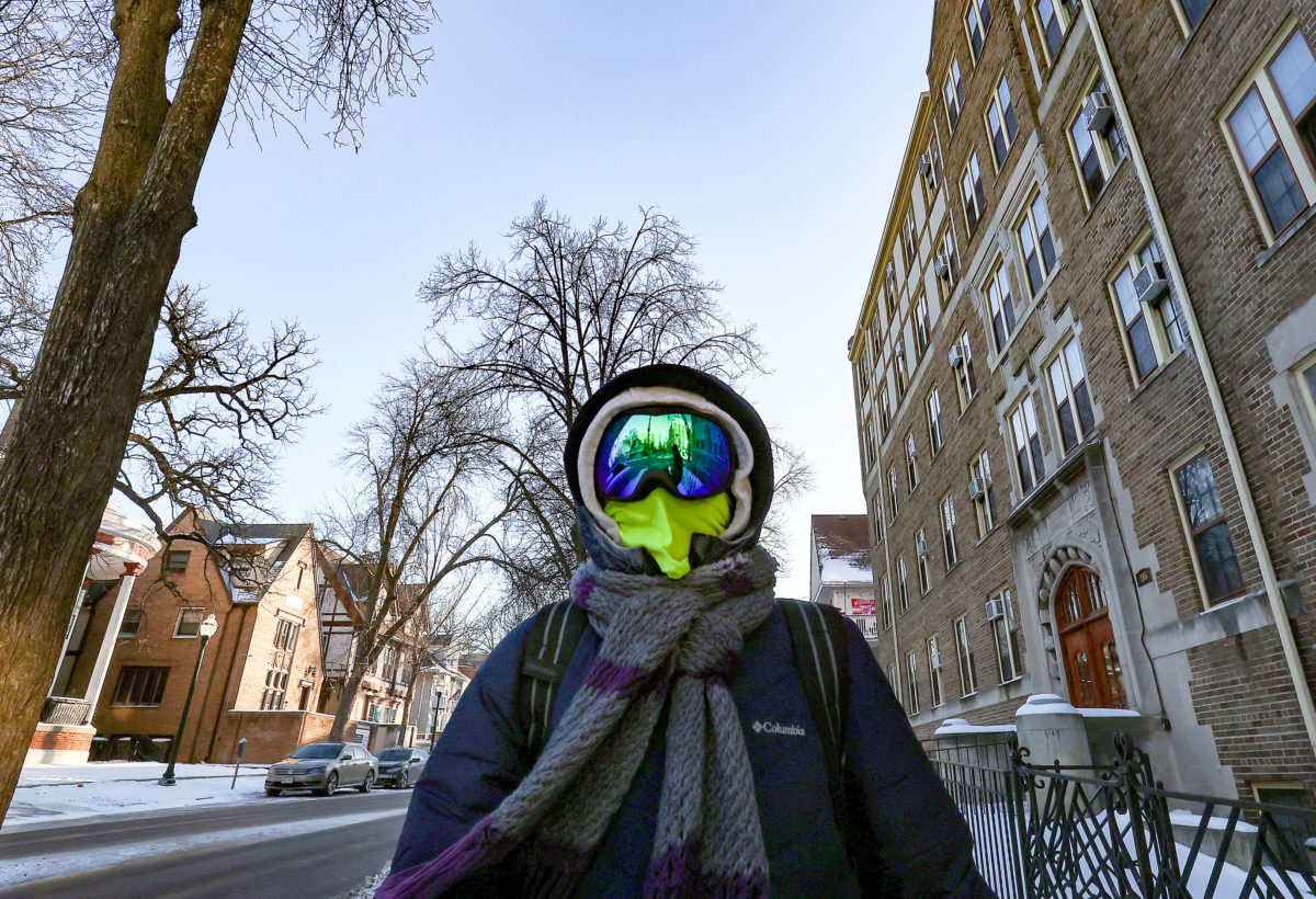 The first place image works best because of the ski mask/face covering. It conveys the lengths people go to in order to go about their lives in extreme cold. The judges did wish the photographer wasn’t visible in the mask, but sometimes that’s unavoidable. The second photo captured a quiet moment that shows the mother’s determination. She is alone as she waits for news, and you can sense that she wasn’t going to leave until she received the information she came for. The protest photo captured a lighter moment while highlighting a tactic activists are using to get their messages across in the current political climate. The judges agreed it would be a stronger image with a tighter crop.