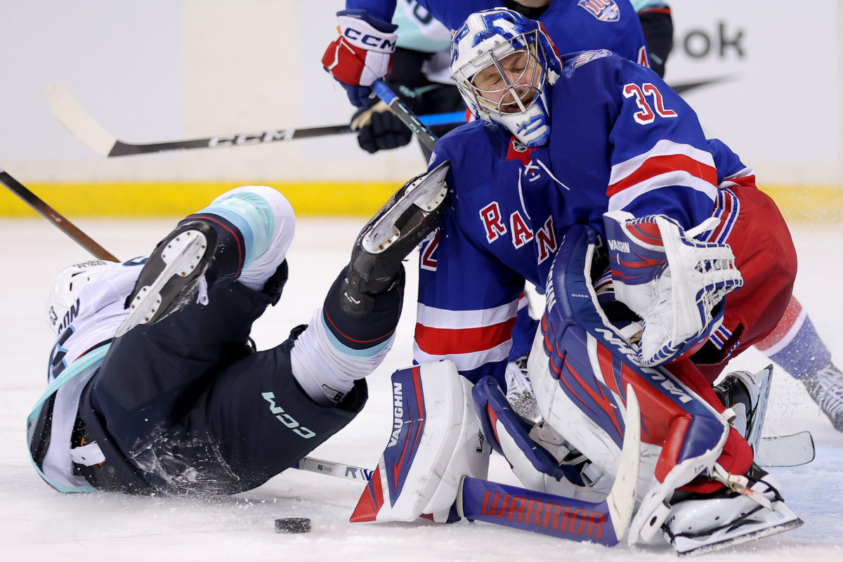 3) The goalie's face is the best element of this frame because it makes the viewer brace for impact. The exposed skate blade adds the element of danger; having the puck in the frame is icing on the cake.