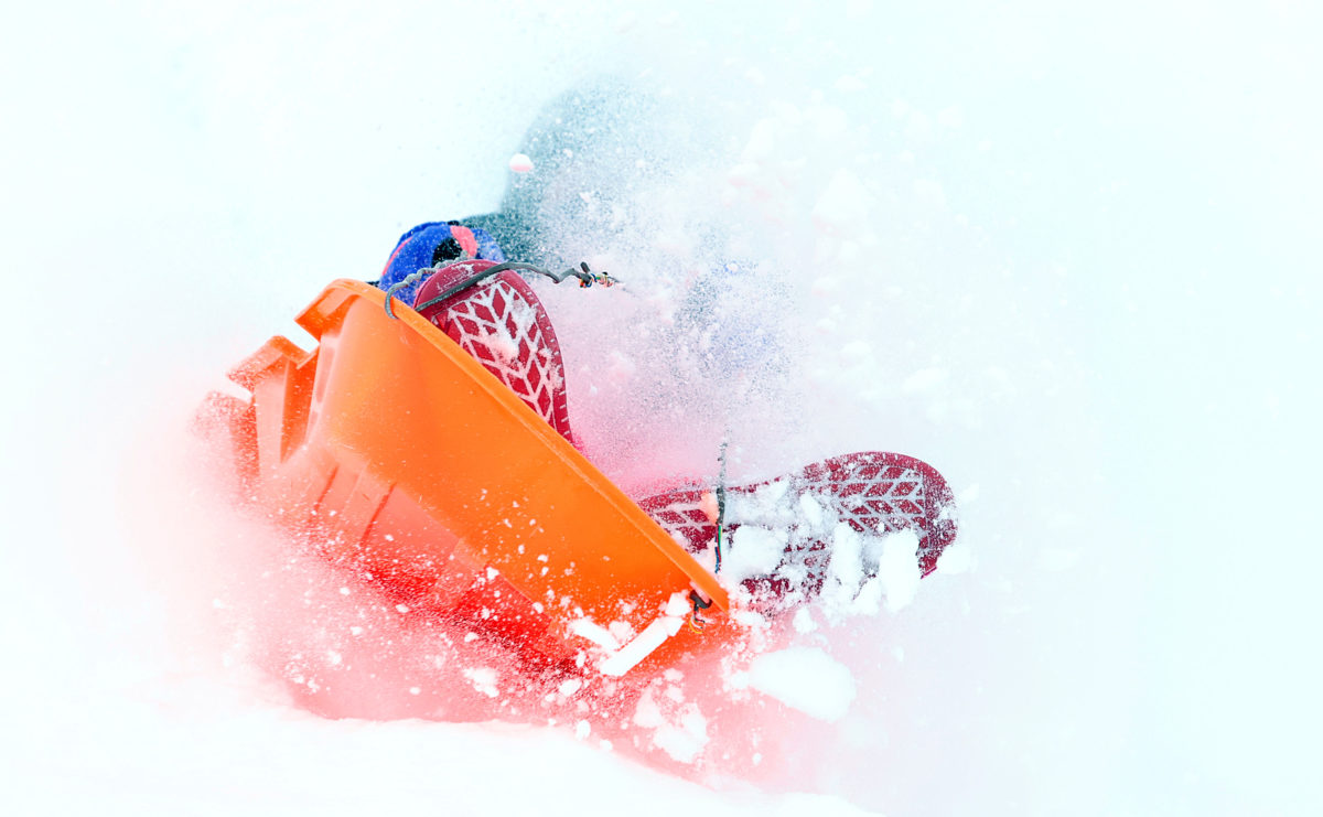 1) Incorporated a novel way to photograph people sledding. Pair that image with a second photo of a tight face and there is a section front package.