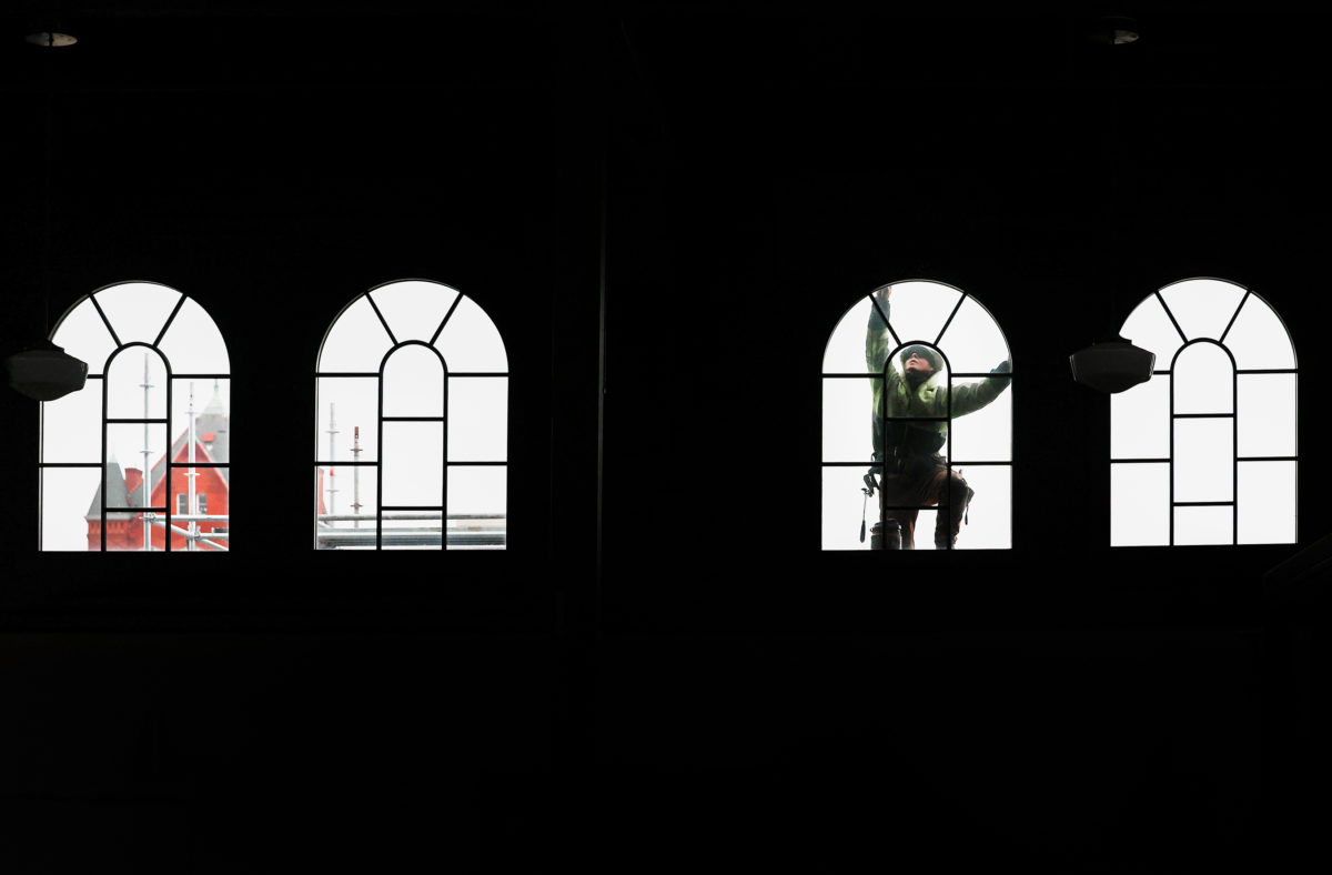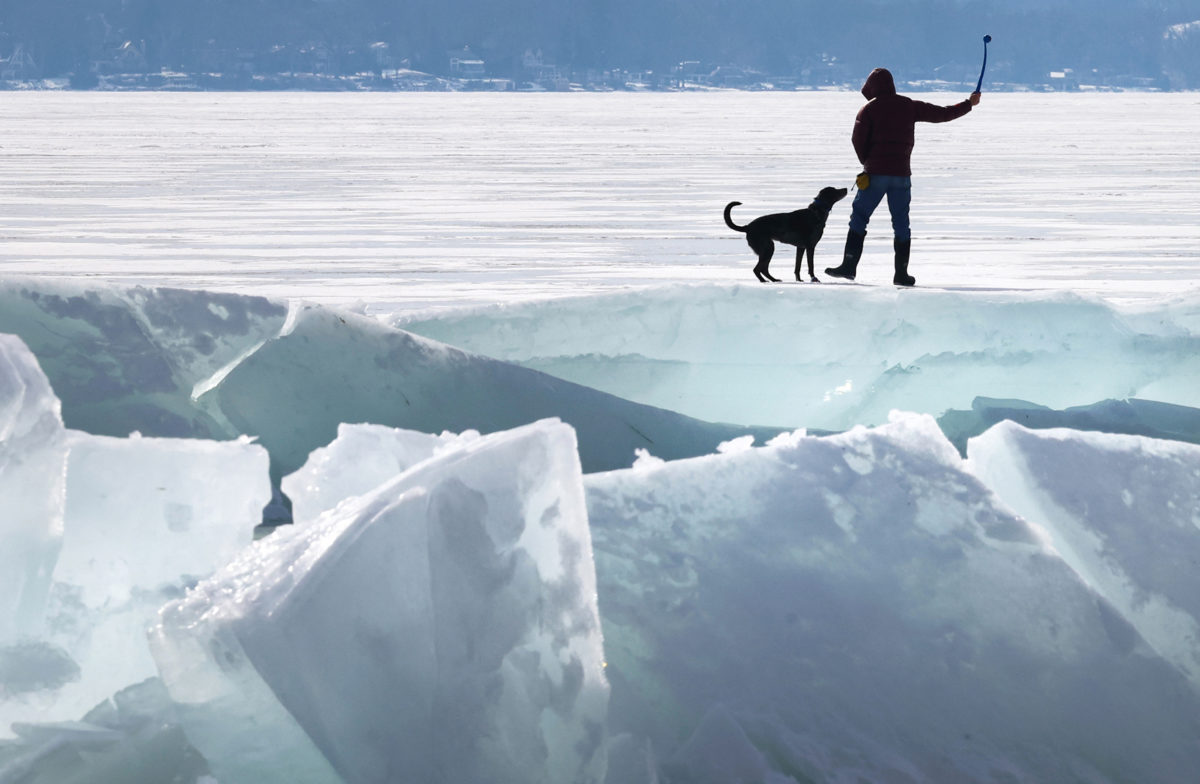 1st: Great expression and all-around fun photo, oh to be young again. Just a nice feature image. 2nd: Now that's a lot of ice; the man and his dog help make playing fetch on ice is different and pleasing. 3rd: Renovations are almost always good for graphics lines and framing.