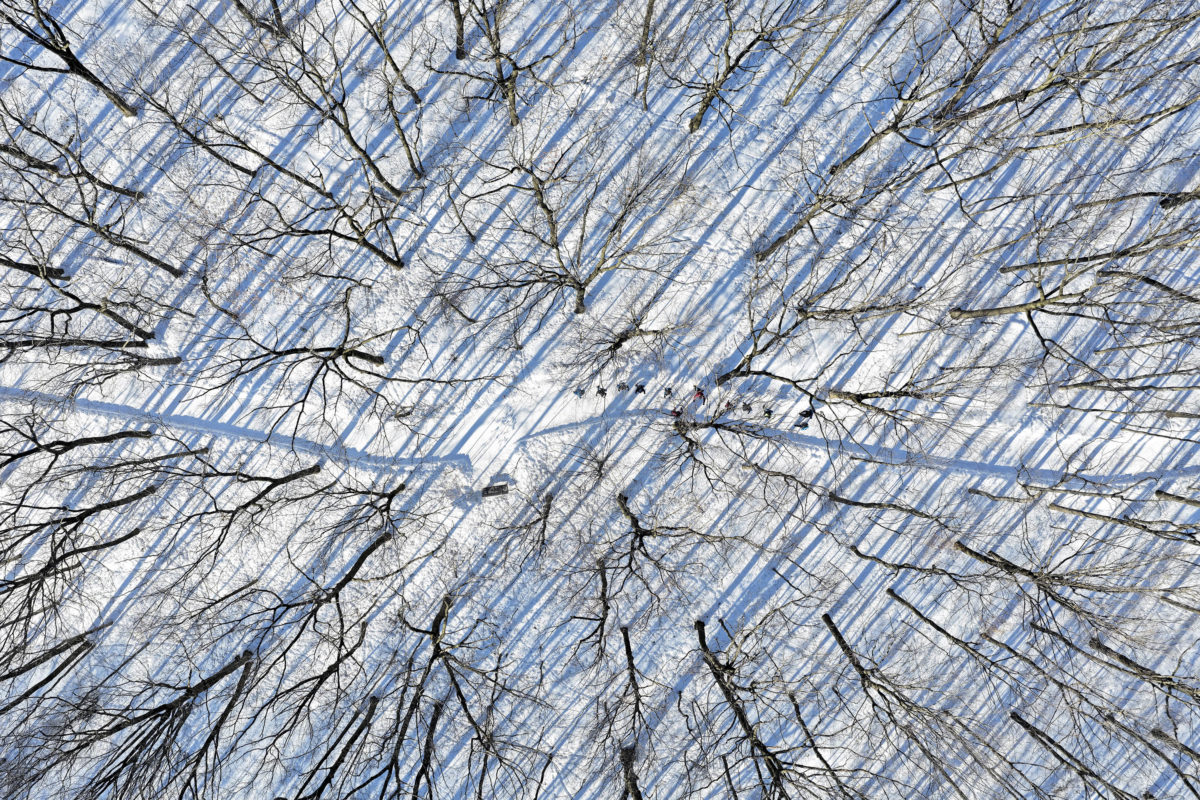 First place stood out to us as a great feature find with nice light and good seeing to use the bird stickers. Second is visually interesting winter feature that we enjoyed looking at. The photographer composing the image well while using the drone heightened it along with the forethought to frame the runners. Third was another clever winter feature that made us feel the temperature.